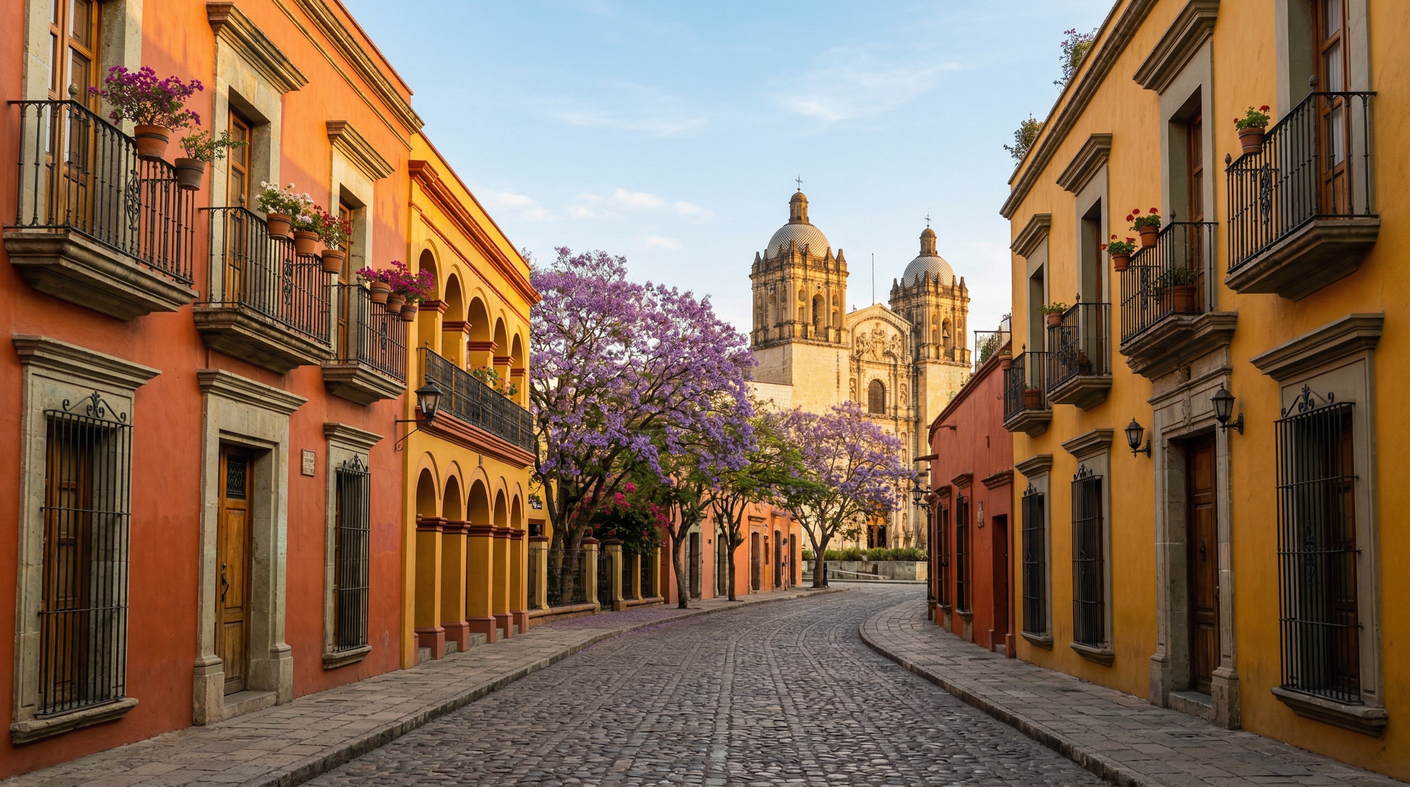 The Zocalo at midday is everything a main square should be. The great cathedral of Santo Domingo looms at the northern end, its baroque facade almost impossibly ornate. Jacaranda trees drop purple petals onto the stone pavers. Marimba music drifts from somewhere you cannot quite locate. I sat at a cafe beneath the portales and ordered a tlayuda, that enormous crisp tortilla loaded with black bean paste, quesillo string cheese, and smoky tasajo beef, and ate it slowly, watching the city breathe.